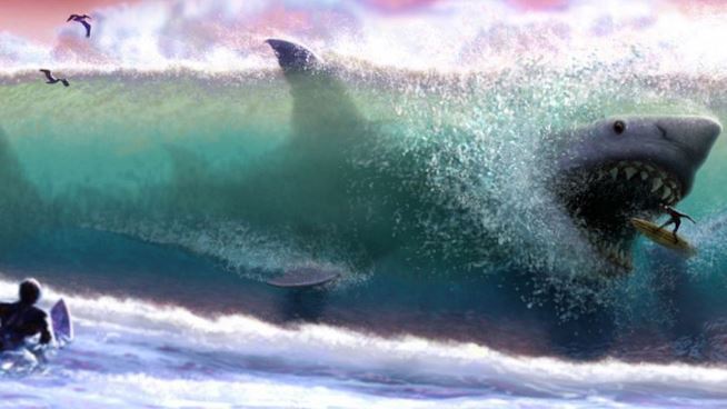 Мегалодон ловит тираннозавра! Сей эпизод был в первой главе книги.