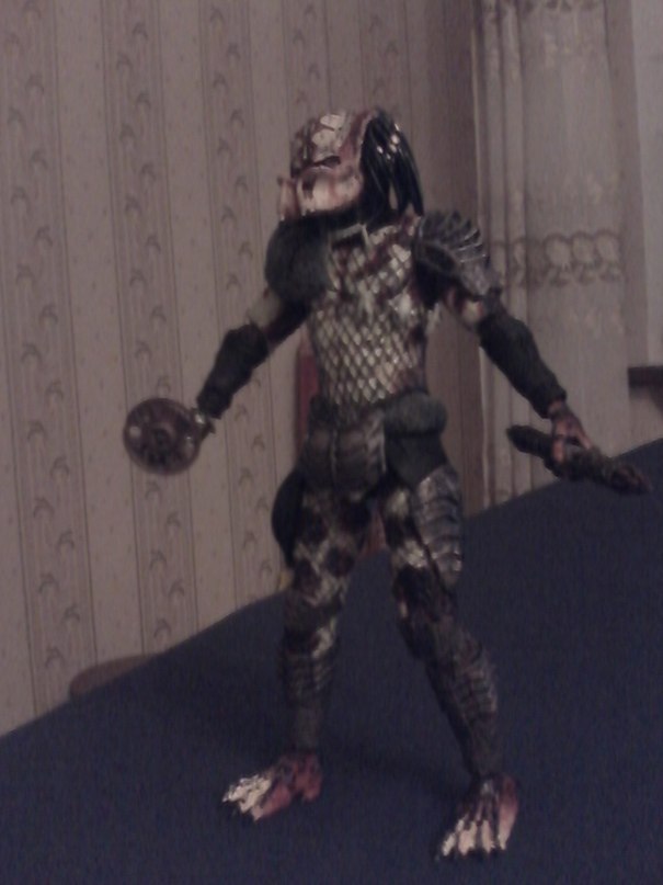 Я недавно приобрёл фигурку Хищника из х/ф "Хищник-2." Но это не основной Хищник, вокруг которого вертелся сюжет, а один из массовки представителей сей инопланетной расы, которого можно созерцать в финале всего несколько минут.
